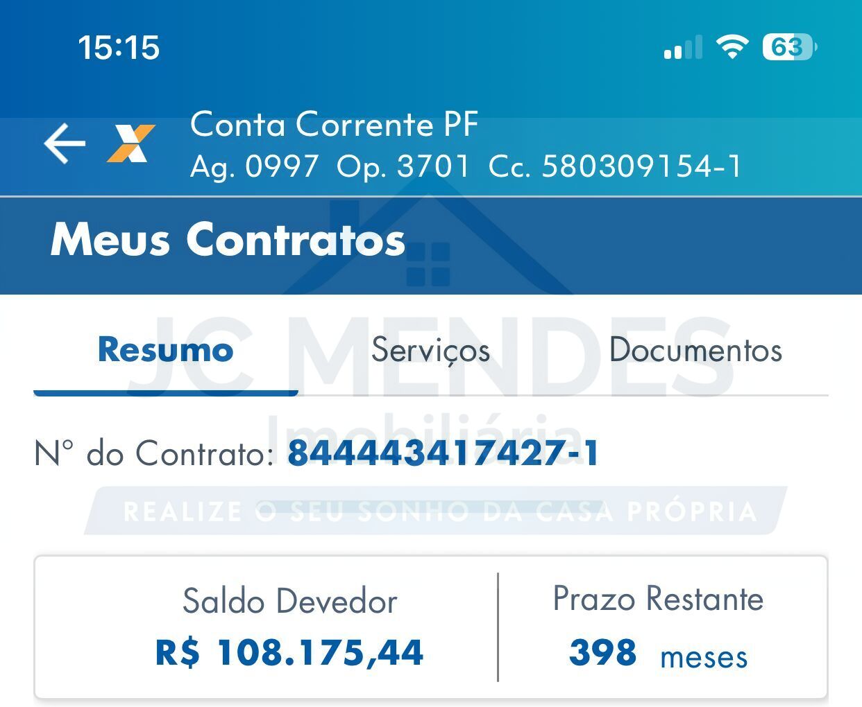Saldo devedor: 108.175,44 prazo restante 398 meses.